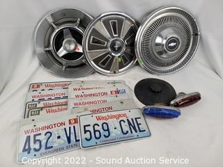 Lot #0175: Hub Caps, License Plates, Auto Lights