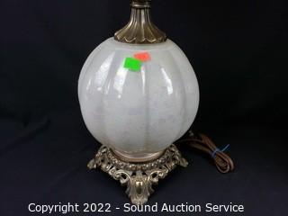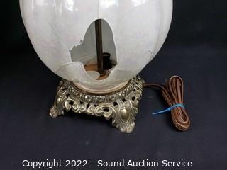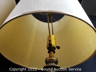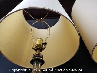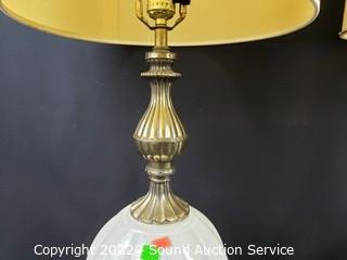 Lot #0247: Pair of Brass & Iridescent Glass Table Lamps