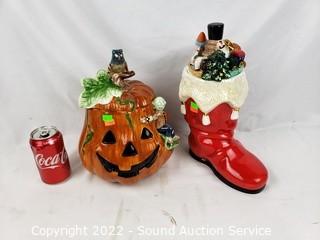 Lot #0109: Pumpkin & Christmas Stocking Ceramic Cookie Jars