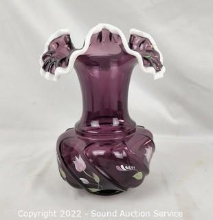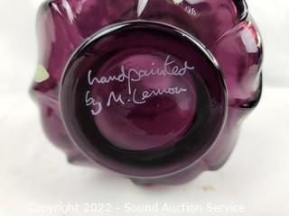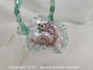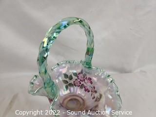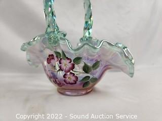 Lot #0094: Signed Hand Painted Fenton Glass Vase & Basket