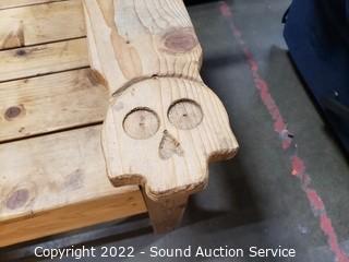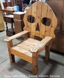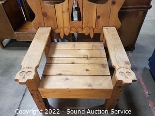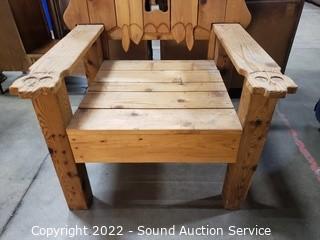 Lot Details: 55.5" H x 37.5" W x 30" D x 18" to seat. Some weathering wear from use.