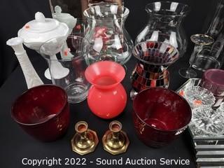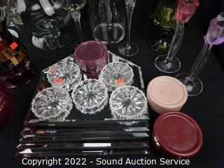 Lot #0057: Vases, Hurricanes, Display Mirrors, Coasters