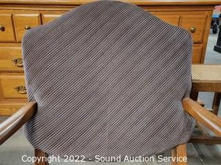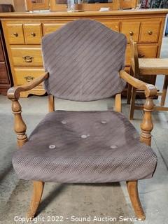 Lot Details: Some minor wear, upholstery is in great condition. 31.5" x 25", 14" to seat.