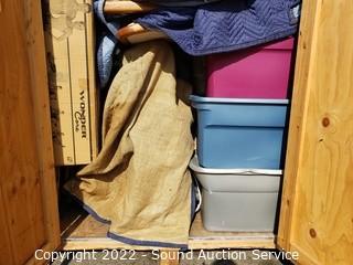 Each vault is approx. 88" H x 60" W x 83" D. Refer to photos for vault contents, what you see in the photos is what we see, we have not gone through vaults. Please come in to preview, contents of vaults may not be gone through. Vaults themselves & blankets not included. As is, no refunds. $100, deposit required at the close of the auction upon winning a vault, refunded after complete removal of vault contents.