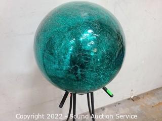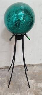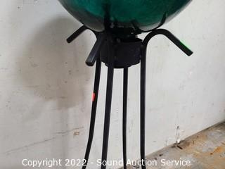 Lot #0363: Green Glass Gazing Ball w/Wrought Iron Stand