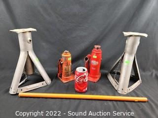 Lot #0055: 2 Bottle Jacks & Pair of Jack Stands
