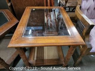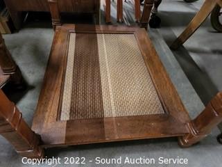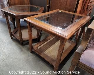 Lot #0031: 2pc Glass Top Woven Bottom Side Tables