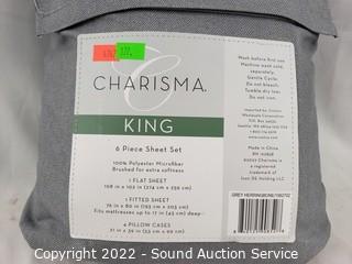 Lot #0177: 6pc Charisma King Grey Polyester Sheet Set