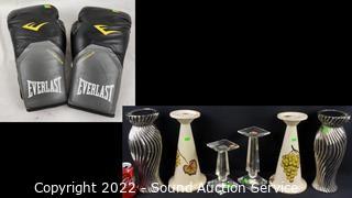 Lot Details: 6 Decorative Candleholders, 7" to 12" tall. Everlast 14oz Training, Boxing Gloves.