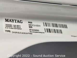 Lot Details: Pulled from the home working. Model MEDC215EW1, Serial M74389693. 43" H x 29" W x 25.5" D. Comes with owners manual. Some minor wear to finish.