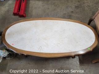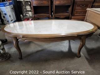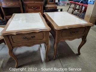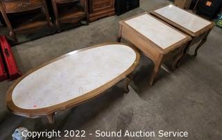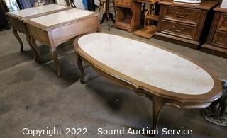 Lot #0026: Mersman 3pc Maple? Marble Top Table Set