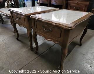 Lot Details: 2 single drawer side tables. 21" H x 19" W x 27" D. Coffee table 15.5" H x 51" x 23". All in excellent condition.