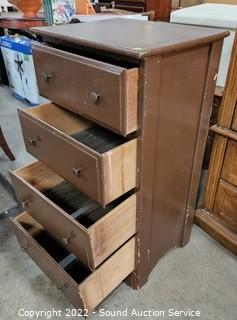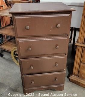 Lot #0019: Vtg. Brown Painted Wood 4-Drawer Chest