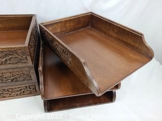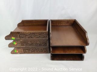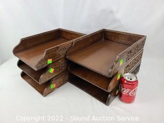 Lot #0256: 6 Carved Wood Desktop Organizers