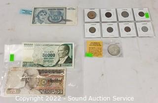 Lot #0305: Assorted Foreign Coins & Currency