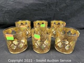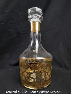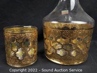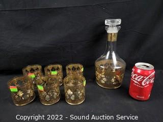 Lot #0064: Gold Overlay Decanter & Highball Glasses