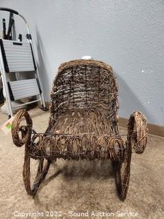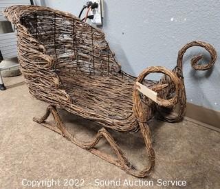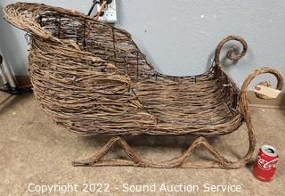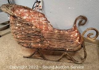 Lot #0350: Metal Frame Wicker Wove Lighted Sleigh Decor