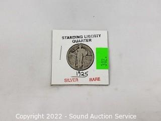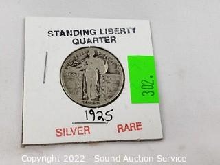 Lot #0302: Rare 1925 90% Silver Standing Liberty Quarter