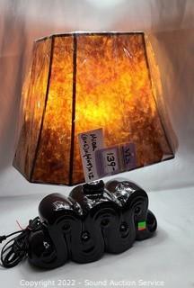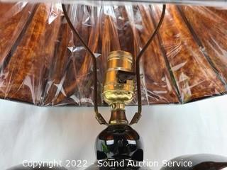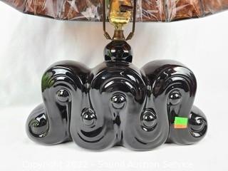 Lot #0204: Vtg. Black Ceramic Table Lamp w/Mica Shade