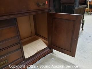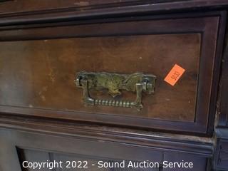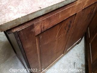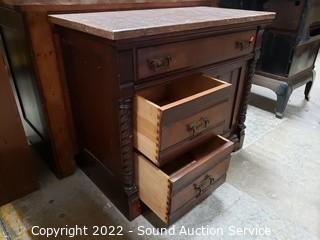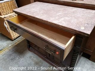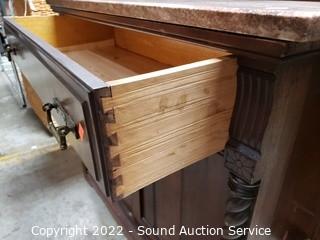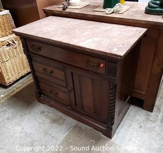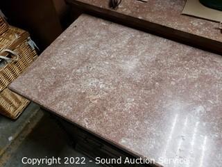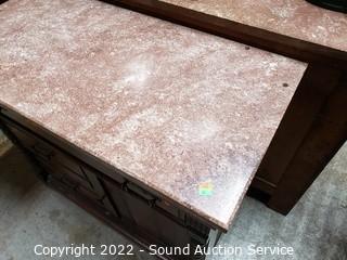 Lot #0026: Vtg. Pink Quartz Top Mahogany Wash Station Commode