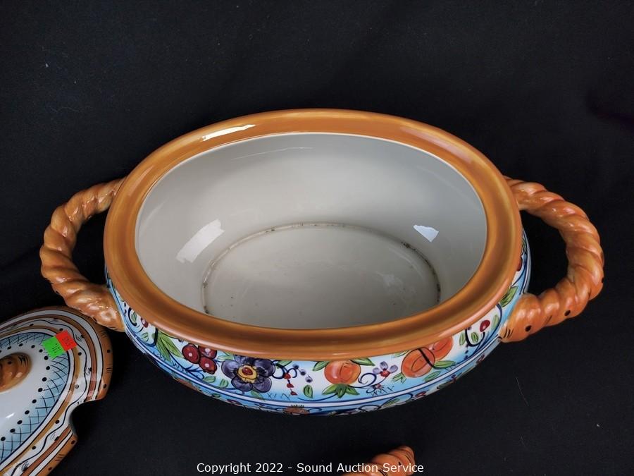 Lot #0131: Dano Farrucci Hand Painted Tureen & Bread Bowl