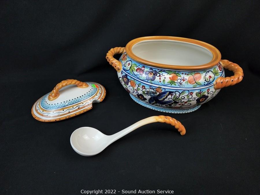Lot Details: Bread bowl has a chip, tureen comes with ladle. 2.75" x 13" bread bowl, 7" x 13" x 8" tureen.