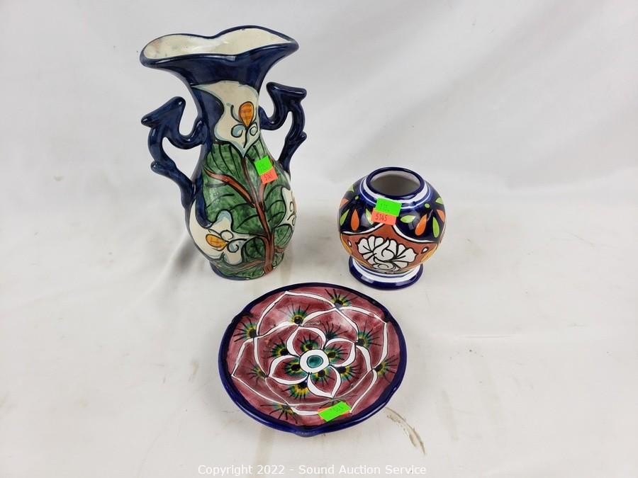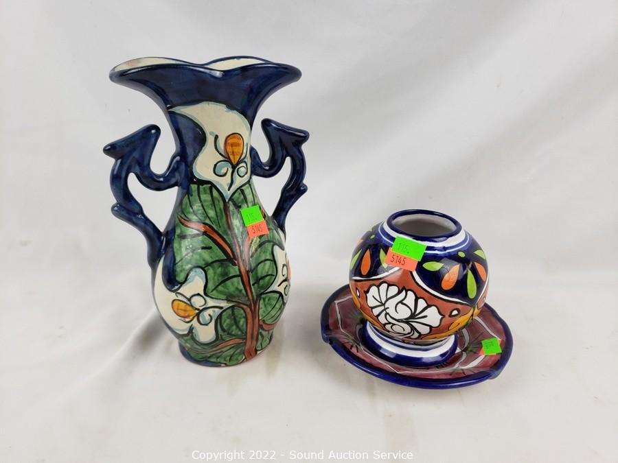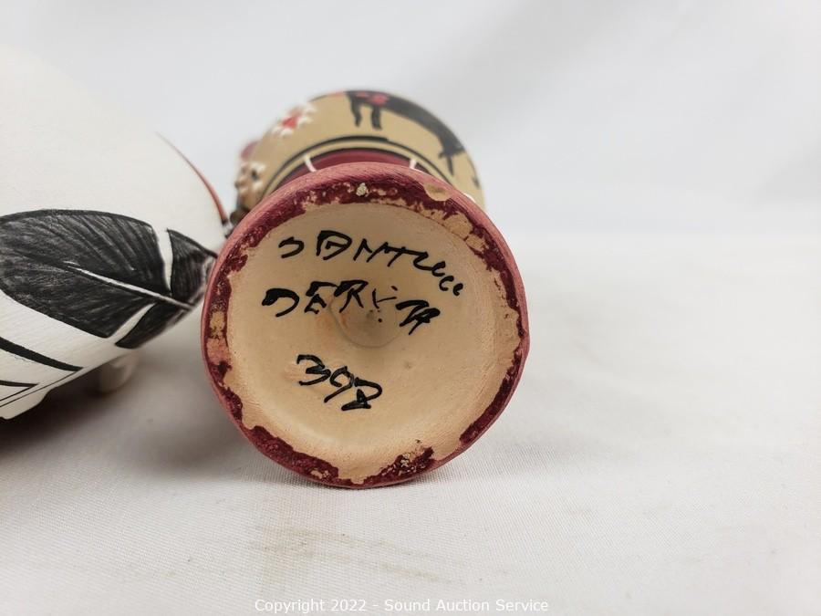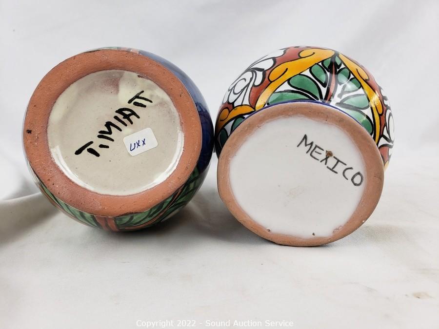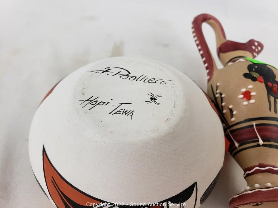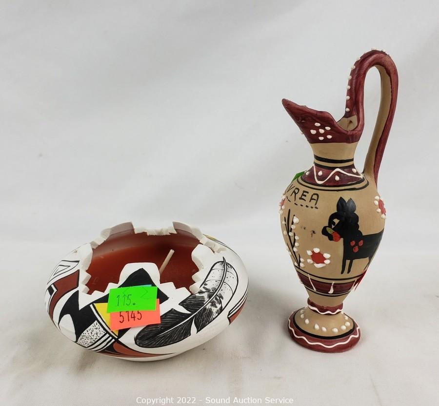 Lot Details: Candle is Hopi-Tewa signed . Small pitcher is signed Mexico, Vase & a few other pieces are also signed. 2" to 8.25" tall.
