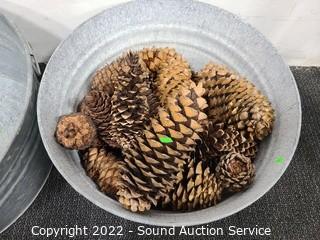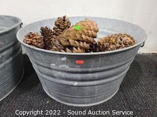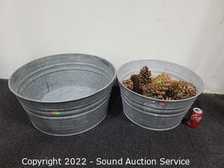 Lot #0118: 2 Galvanized Tubs & Pine Cones