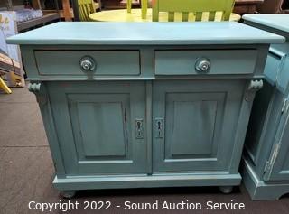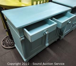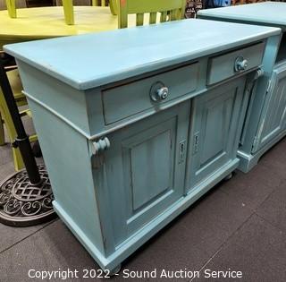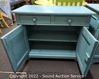 Lot #0074: Blue Distressed Finish 2-Drawer Cabinet