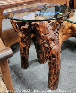 Lot #0027: Unique Natural Log Base Glass Top Table