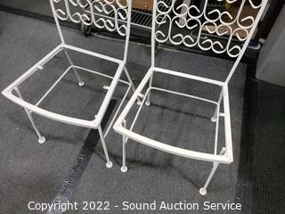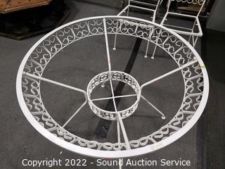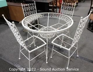 Lot #0052: White Painted Wrought Iron Patio Table w/4 Chairs