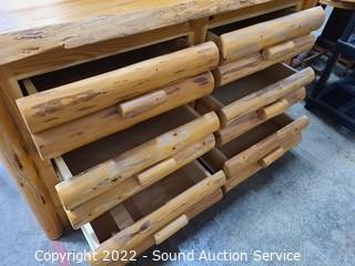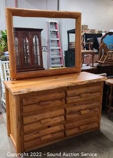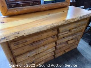 Lot #0007: 6 Drawer Live Edge Pine Log Chest w/Mirror