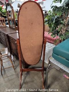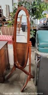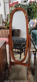 Lot #0048: Cherry Finish Free Standing Wardrobe Mirror