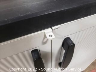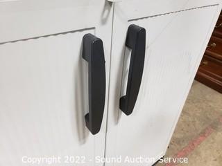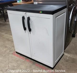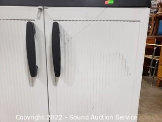 Lot Details: 36" H x 34" W x 17.5" D. Single adjustable shelf. Some wear to finish.