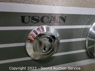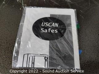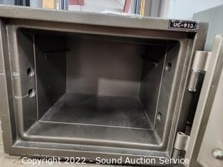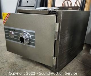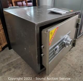 Lot Details: Combination, key locking with combo and key in manual. Works. Some wear to finish. 14" H x 16" x W x 15" D.