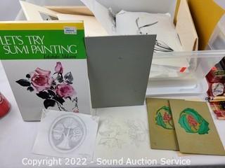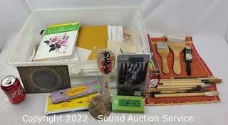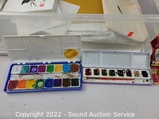 Lot #0072: Assorted Artwork Brushes, Chisels, Watercolors