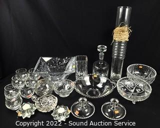Lot #0073: Assorted Crystal & Clear Glassware Decor