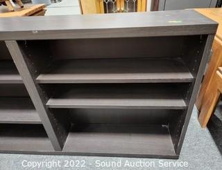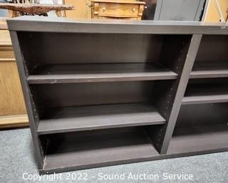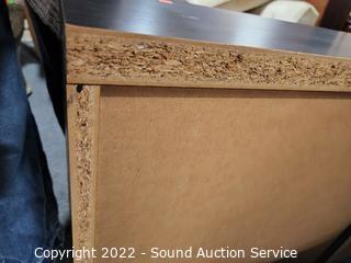 Lot Details: 25.5" H x 47" W x 8" D. Particle board construction, dark stained oak veneer.