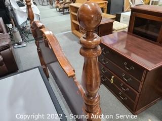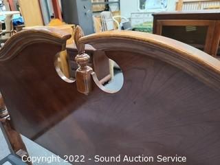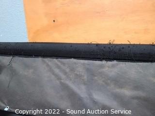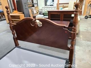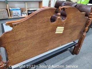 Lot Details: Works. Comes with remote. Mfg. date Dec. 2019. Comes with headboard. Various pet snags, along edge. One finial screw on headboard is loose. 12" H x 58" x 79".