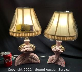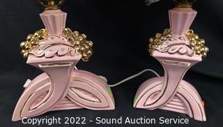Lot #0162: Pair of Vtg. 1940's Pink Ceramic Table Lamps