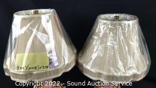 Lot Details: Been rewired. Work. Approx. 20" tall with shades, 9" x 3.5" bases. Shades appear unused, wrapped in original plastic.