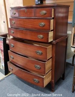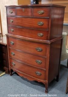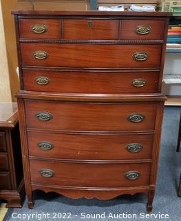 Lot #0134: Vtg. Mahogany 6-Drawer Highboy Dresser