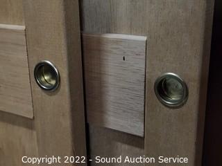 Lot Details: Sliding doors (don't slide very well). Some wear to finish. 71" H x 35" W x 22" D.