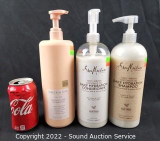 Lot Details: 2 Shea Moisture Shampoo & Condition 34oz bottles. Kristin Ess The one Signature Shampoo 33.8oz bottle. All full or mostly full.