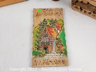 Lot Details: 13" to 15.5" tall figures, 9" H x 12" x 4.5" craved wood Noah Basket w/Lid, 6.5" to 11" W x 11.5" to 15" W decor.