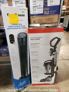 Lot Details: Cart NOT included. Tower fan, personal fan, mats, convection oven, toilet seat, faucet, rug, Eureka Dash Sprint Vacuum(turns on motor won't spin vacuum head, belt is attached). Many items, damaged, missing pieces etc, all as is.
