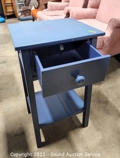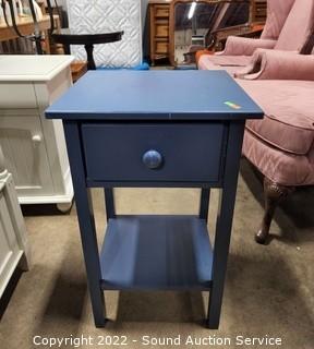 Lot #0022: Blue Painted Finish Single Drawer Side Table