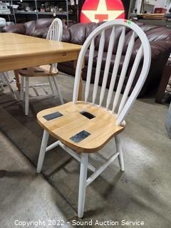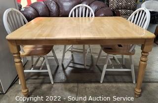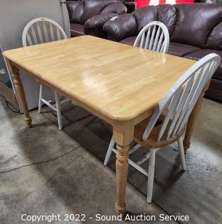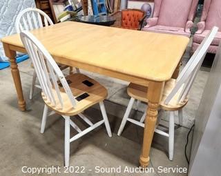 Lot #0008: Ivory & Contrasting Maple Dining Table w/3 Chairs