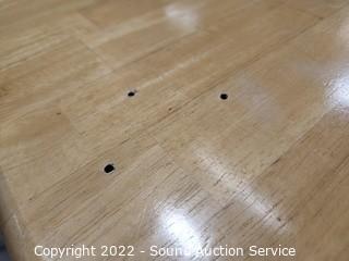 Lot Details: Looks to of had chair pads, velcro stuck to the chairs. 30" H x 53" x 36". Various wear to the finish, scuffs, scratches, dirty spots, some screw holes in the top.