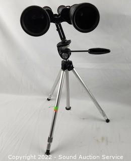 Lot Details: Approx. 16" to 36" tall tripod. 20x60 Binoculars. Comes with mount for tripod, owners manual & case.
